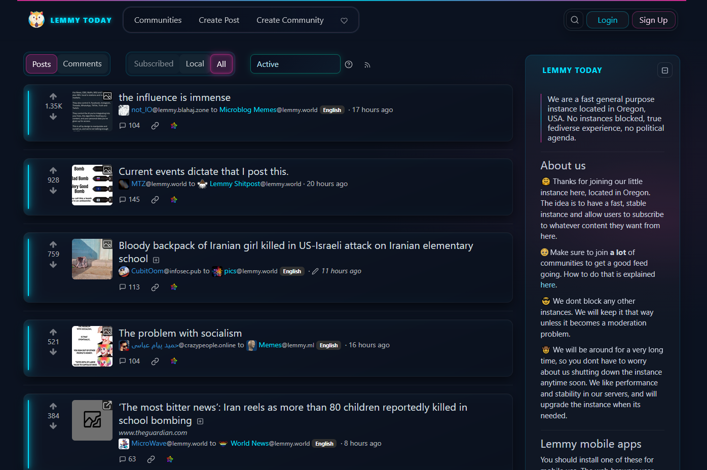 I browse different lemmy instances usually because the feed is always different. Was blown away when I recently went to lemmy.today, no clue when they did the change but whoever is in charge of the design has my admiration! (chef’s kiss)