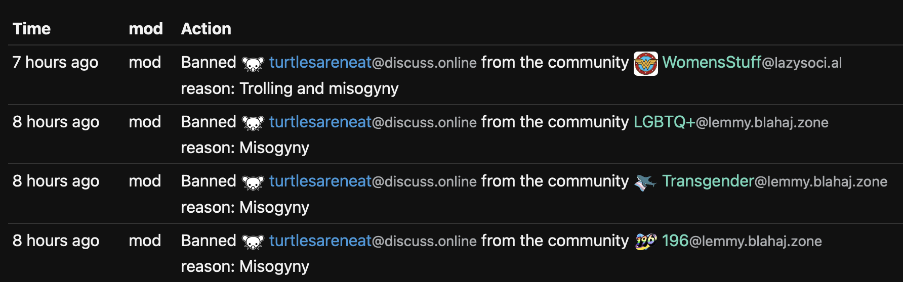 And now I can’t use LGBTQ and Trans communities as a result. OK, fuck turtlesareneat, he shouldn’t be allowed in queer communities cause he hurt a mod’s feelings.