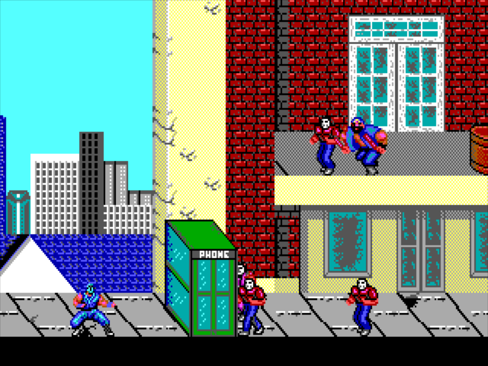 Yes, they included environmental interaction. Throw an enemy into a phone booth and it explodes. Because… why not? But the animations are stiffer than taxidermy. You can’t tell if that pixel smear is a dude, a trash can, or your own disappointment rendered in 16 colors.