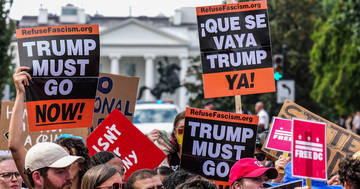 The demonstrations scheduled for Saturday — branded as “Fight the Trump Takeover” — are being organized by more than three dozen groups, including the Democratic National Committee, according to plans shared first with NBC News.