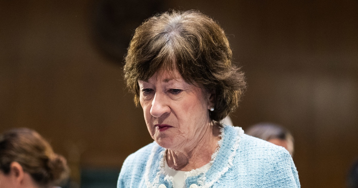 Sen. Susan Collins, R-Maine, was heckled and drowned out at times by demonstrators at a ribbon-cutting ceremony in her home state Tuesday, the latest in a series of confrontations between protesters and members of Congress.