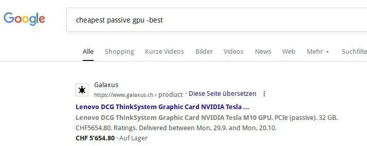 Your name sounds german so here ya go limited to 30€ max https://www.ebay.de/sch/i.html?_nkw=amd+passive+gpu&_sacat=0&_udhi=30&rt=nc