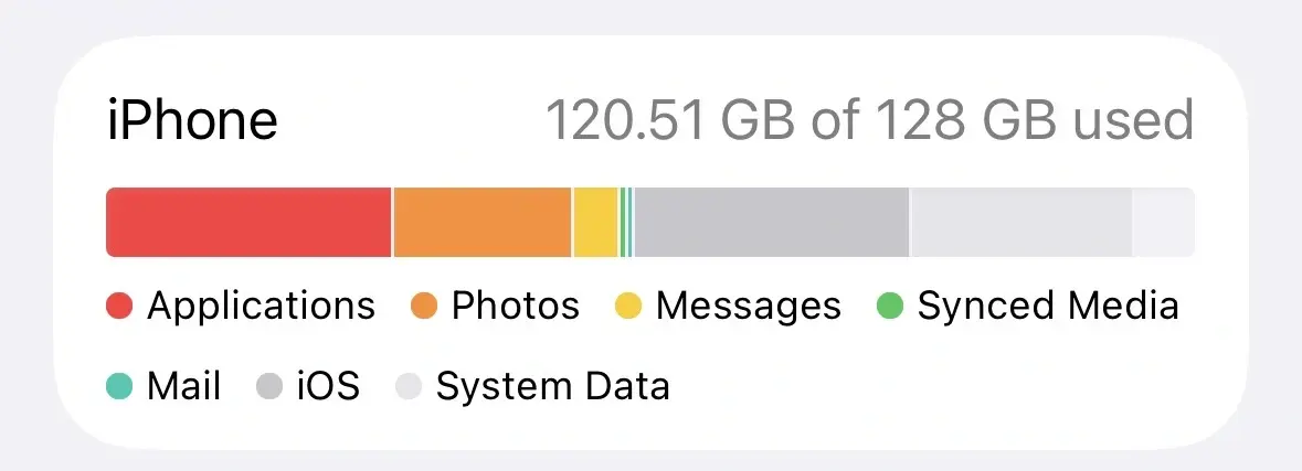 That’s over 80GB just for iOS, which is almost 2/3 of the storage space. Annoyingly part of the OS is a 12GB reserve for updates but that doesn’t count for beta installs.
