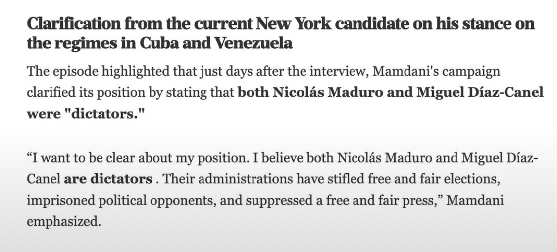Cuba and Venezuela are both more democratic than the US Empire, and moreover affirming the US Empire’s narrative on Venezuela while it manufactures consent for terrorizing and killing Venezuelans is the opposite of what a socialist should be doing. By affirming the US Empire’s narrative, Mamdani is providing a block on what is considered “acceptable leftism” in the public discourse.