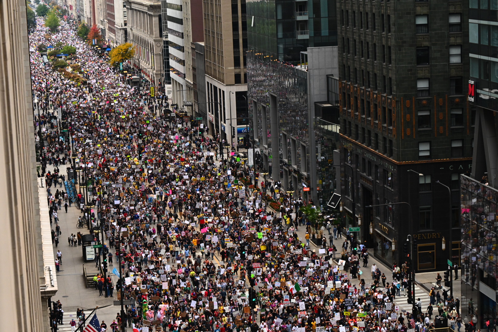 “They want a rematch of the Civil War,” Chicago mayor Brandon Johnson said to the crowd. “But we are here to stand firm, to stand committed — that we will not bend. We will not cower. The attempt to divide and conquer this nation will not prevail, because when the people are united, justice always prevails.”