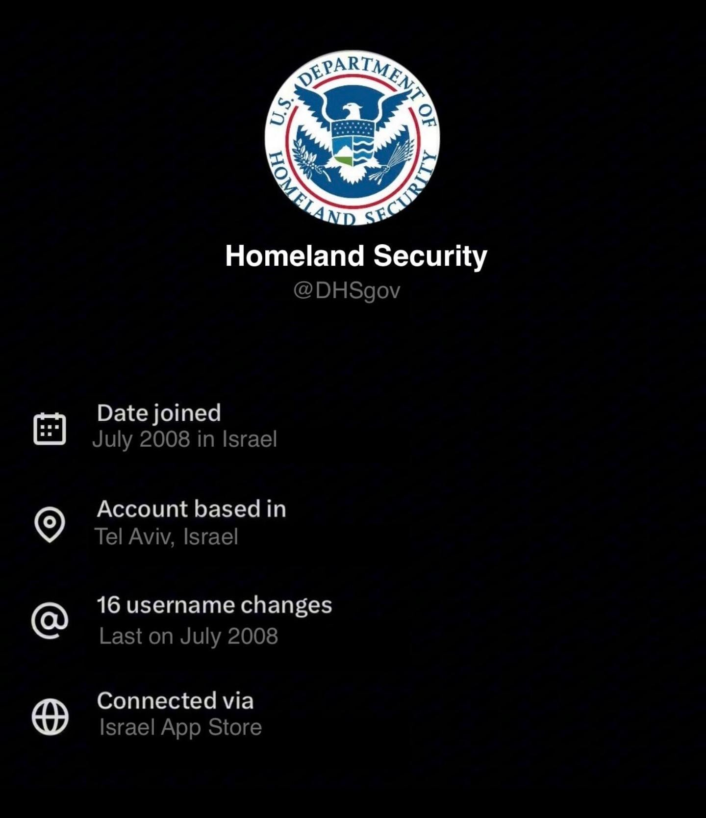 Spectre@lemmy.ml to United States | News & Politics@lemmy.ml · 10 days agotwitter briefly allowed people to see where each account was operated from. turns out, the official DHS account is run from Tel Avivlemmy.mlimagemessage-square16linkfedilinkarrow-up1167arrow-down115