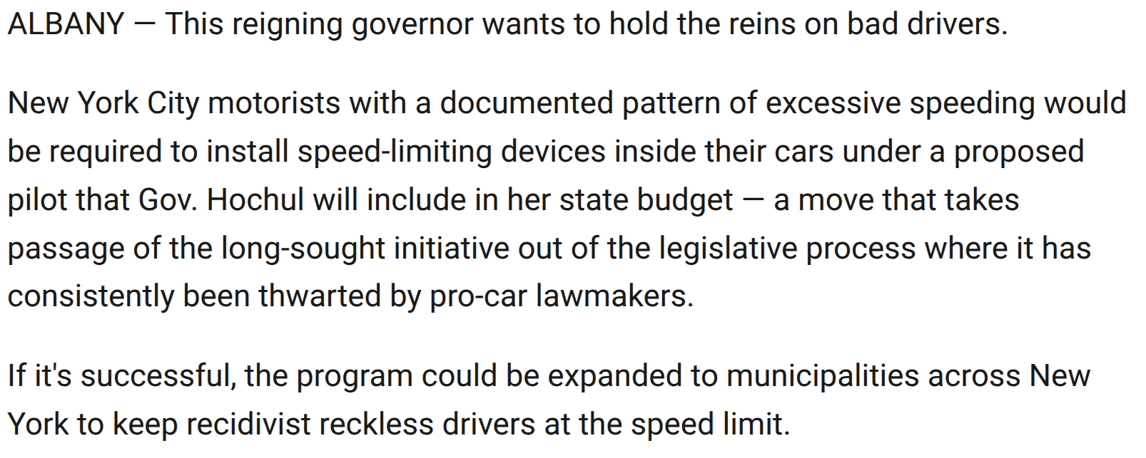 I suppose the older I get the more I can get behind this, similar to interlock devices for people that can’t control their drinking, I would imagine the offender would have to pay for it or lose their license. I know it seems crazy to force people to stay within the speed limit, but fining and tickets don’t work for some people.